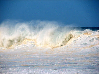 The pounding and fury of winter waves have always held me in thrall...each one different and from so far away to finally come to an end at my feet. There was a time when I would dive under these waves of Waimea and feel safe...I choose smaller waves now but that feeling remains the same. It's calmer beneith the fury. And invigorating!