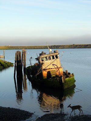 A very early and chilly morning found me down in the harbor and all kinds of magic came together as the wildlife and light met for a brief interchange. Seals, vultures,deer,ducks and me watching the fog turn golden and burn off as the sun woke up. Seaside along the Oregon Coast...